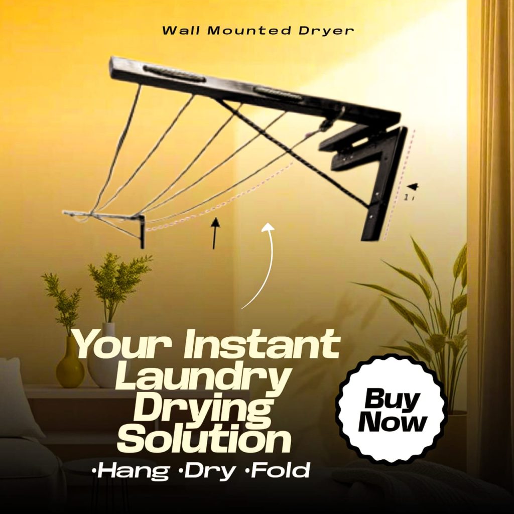 Introducing the Foldable Wall-Mounted Cloth Dryer — the smart, space-saving solution designed for modern homes, apartments, school hostels, hotels, and anywhere space is precious. Strong enough to hold even your duvet and heavy clothes, yet sleek enough to disappear when not in use.